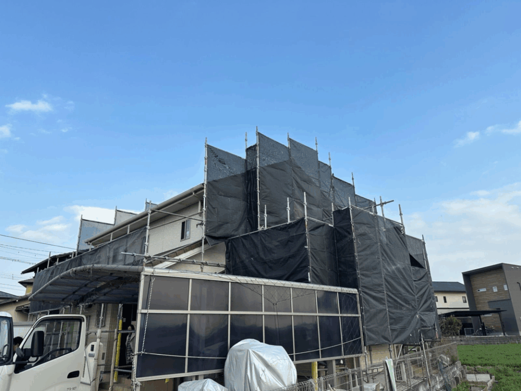 また、周囲への飛散を防ぐためにメッシュシートも設置し、近隣への配慮も徹底しています😌