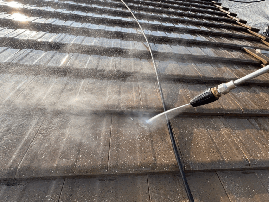 塗装前の重要な工程である高圧洗浄を行います👍